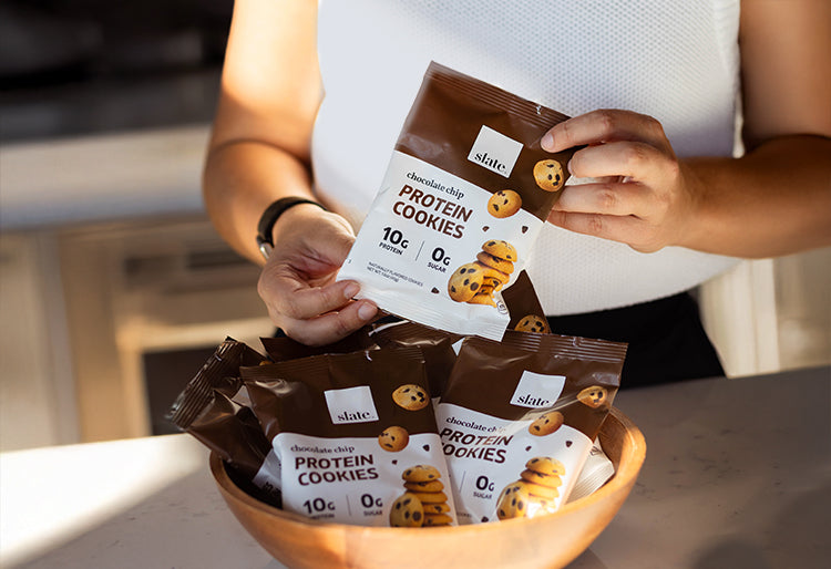 Our Chocolate Chip Cookies are the delicious high protein snack you’ve been waiting for. Take these soft-baked, sweet, bite-sized treats anywhere for a quick and satisfying boost. Each bag contains 10g protein, 0g sugar, 170 calories, and 1g net carbs.