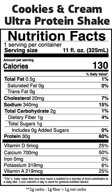 Your favorite childhood treat packed in a can. Packed with 30g of protein and only 1g of sugar, the Cookies & Cream 30G Ultra Protein Shake is the perfect post-workout reward or a crave-worthy dessert.