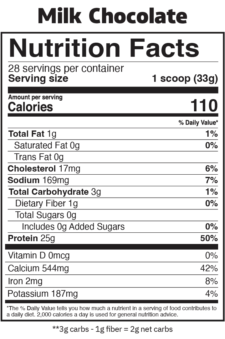 We packed 25g protein and 0g sugar into every single serving of this 110 calorie, delicious chocolate protein mix. Add a scoop of this lactose free mix to water, a smoothie, or your favorite smoothie for the ultimate protein-boost shake.